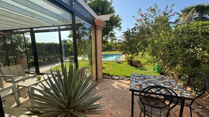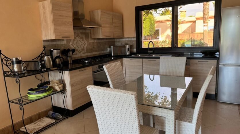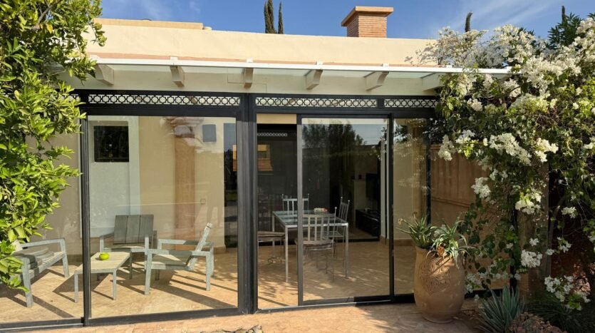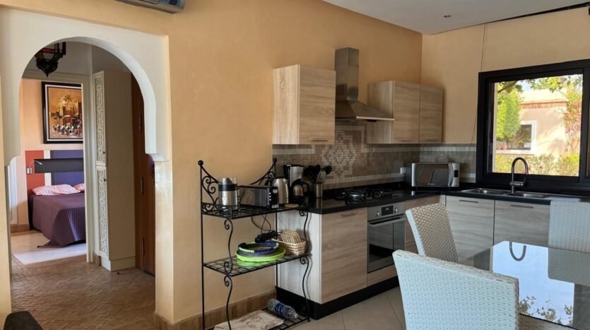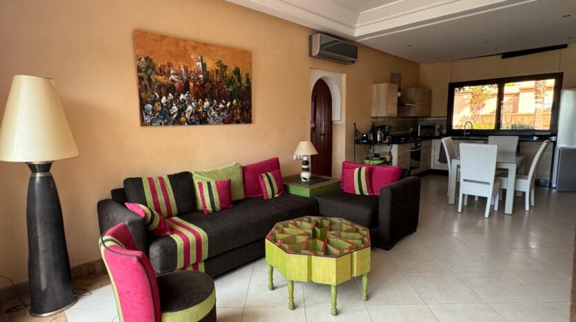 Située dans le prestigieux complexe privé de L’Orangeraie, sur la route de Taroudant, à seulement 35 minutes d’Agadir, cette villa de 80 m² est un véritable havre de paix. Avec son jardin verdoyant, sa piscine 3x6m et une vue imprenable sur les montagnes, elle offre un cadre de vie unique et apaisant. Parfaitement équipée, cette maison meublée combine confort moderne et tranquillité, idéale pour des moments de détente ou un investissement locatif stratégique. Venez découvrir ce lieu magique et profitez de la beauté du Sud marocain dans un environnement sécurisé.
